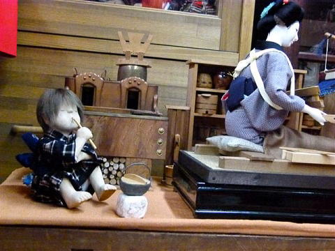 | 大正時代の機織り人形と菊名さん作の火吹き竹を吹く少年を合わせました | |||||