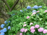 | 今年は少雨のせいか、花が小さく色づきも悪いようでしたが それでも高塔山公園を彩るあじさいを見物する方々で会場は 賑わっていました。 |