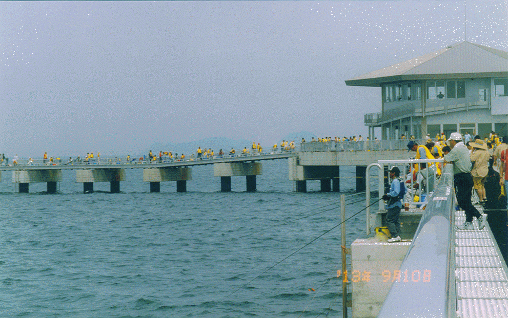 桟橋は、総延長500メートル。途中に2階建ての休憩所があります。
