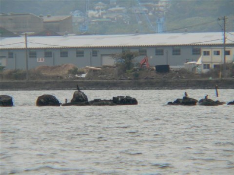| 昔の洞海湾は浅瀬であったので埋め立てが盛んに行なわれ、赤島の沖には鬼が落とした赤岩があったなどというお話が残っているように、今でも、硬い岩礁が残っており海鵜が羽を休めておりました。 |