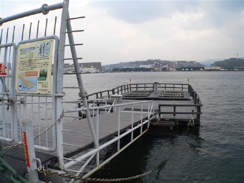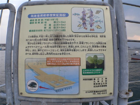 工業が衰退し、又官民の努力により次第に水質浄化が進んでいる湾内で、近年実施されている海藻などによる浄化実験施設です。
