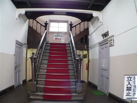 石炭商同業組合が組合事務所として、木造二階建て、数奇屋寄棟、外壁モルタル塗りで清水組施工により1905年建築。業種は変わったけれど現役営業中。