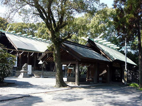 深い鎮守の森に包まれた本殿