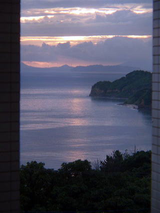 | 夜の海の稲光を堪能した夜明けです |