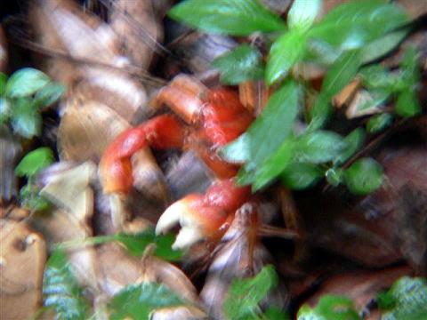 | 思い付いて九州最北端の灯台の夜明を撮りに宿から灯台まで約150メートルの小道を通る時、無数の弁慶蟹が左右に路を開けてくれました。 |
