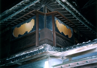 本館は木造瓦葺三階建て 延床面積870u 黒壁漆喰の外観 |