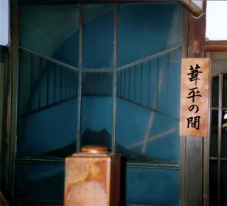 調度品の一つ一つに 昔日の若松の繁栄の名残を感じる 左の写真は上野焼の大壷 |