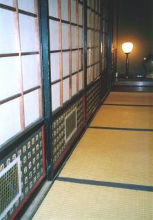 | 内部は洗練された数奇屋風意匠 玄関の網代天井 |