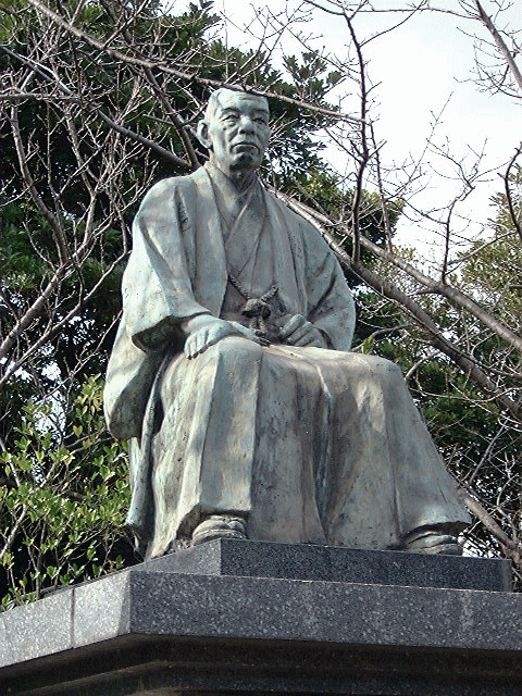 高塔山山頂付近の公園にどっしりと腰を下ろす吉田磯吉翁の像吉田磯吉翁は、民政党の代議士で、当時日本最大の石炭積出港だった若松を支配した大侠客。 鶴田浩二や勝新太郎の主演で吉田磯吉翁を主役とした映画が制作されており、 小説「花と竜」にも登場する。 |
