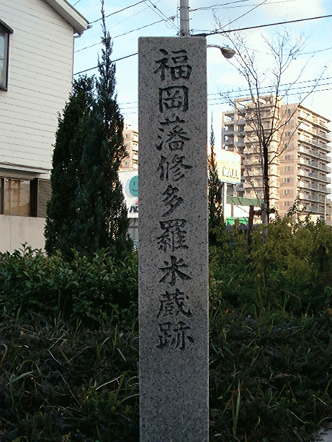 | ◆若松駅前に残る米蔵の碑。洞海湾の昔日を語る。 |
