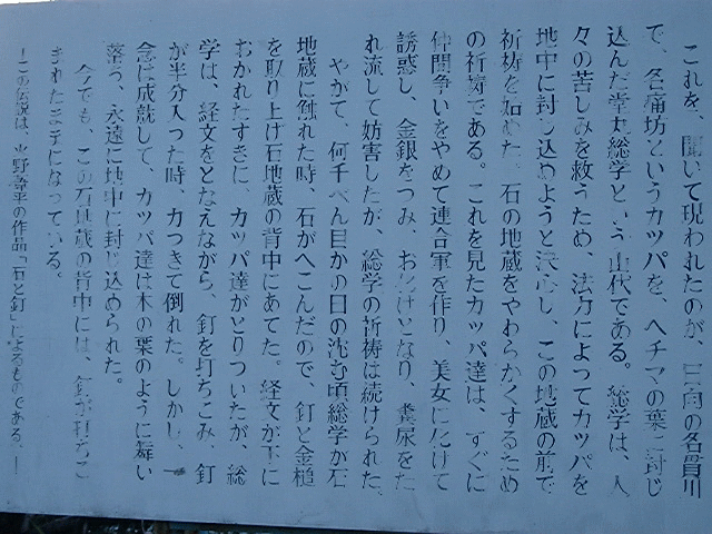 | 若松の河童は空を飛んでたんです。河童地蔵のいわれについては下記参照。 |